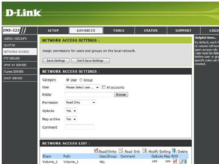 NAS DNS-323 с 2 отсеками для жестких дисков SATA