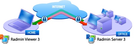 | Серверный модуль (Radmin Server) необходимо установить на удалённом компьютере (например, на офисном ПК), доступ к которому Вы хотите получить. | Клиентский модуль (Radmin Viewer) необходимо установить на локальном компьютере (например, на домашнем ПК или ноутбуке), который Вы хотите использовать для доступа к удалённому компьютеру. |