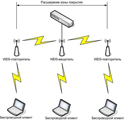 В режимах WDS точка доступа может участвовать в иерархии, позволяющей расширить область покрытия беспроводной сети. Однако при использовании WDS снижается общая пропускная способность, поскольку используется общий частотный диапазон не только для обслуживания клиентов, но и для передачи данных между точками доступа, участвующими в иерархии. Режим WDS может быть несовместим с оборудованием других производителей и серий, а единственный протокол шифрования, доступный в этом режиме, – WEP.