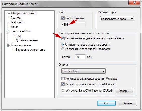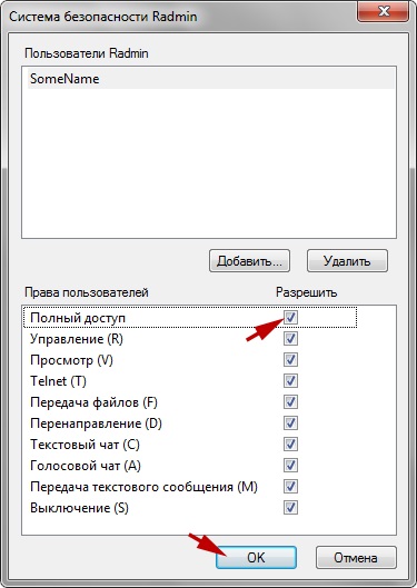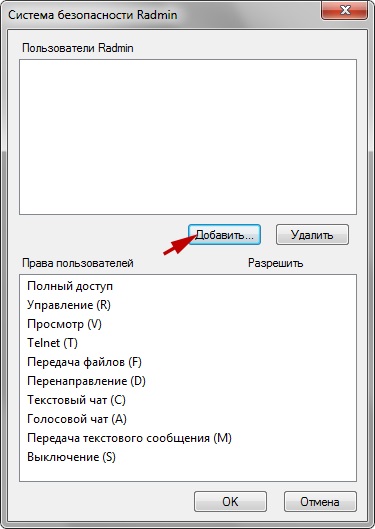 Настройте права доступа к Radmin Server. Следуйте приведённым ниже инструкциям. Нажмите правой кнопкой мыши на иконку Radmin Server в трее и выберите "Настройки Radmin Server" -> "Права доступа..." ![]() Выберите режим безопасности. Система безопасности Radmin наиболее удобна при подключении через Интернет и имеет более гибкие настройки прав доступа. Система безопасности Windows NT преимущественно используется во внутренних корпоративных сетях. ![]() Необходимо добавить пользователя в систему безопасности. Если ни одного пользователя не создано, доступ к Radmin Server невозможен ни при каких условиях. ![]() Добавьте нового пользователя в систему. Имя пользователя и пароль желательно вводить латинскими символами. Минимальная длина пароля - 6 символов. ![]() Теперь Вы можете задать права доступа созданному пользователю. Если ни одна опция не отмечена - доступ к Radmin Server невозможен. ![]() Для обеспечения дополнительного уровня безопасности Вы можете изменить общие настройки Radmin Server. Если Вы используете Radmin только для того чтобы к Вам подключался технический специалист и решал Ваши проблемы удалённо (когда вы находитесь за компьютером), Вы можете настроить подтверждение входящих соединений (отклонять или разрешать подключение вручную и по таймеру). Помимо этого вы можете изменить порт по умолчанию, по которому к Вам подключается технический специалист или администратор. Если Вы изменили порт по умолчанию, запишите его или сообщите администратору, номер этого порта понадобиться чтобы настроить Radmin Viewer. ![]() |